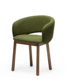 Base in natural polished ash wood, oak, or walnut. Upholstered seat in fabric.