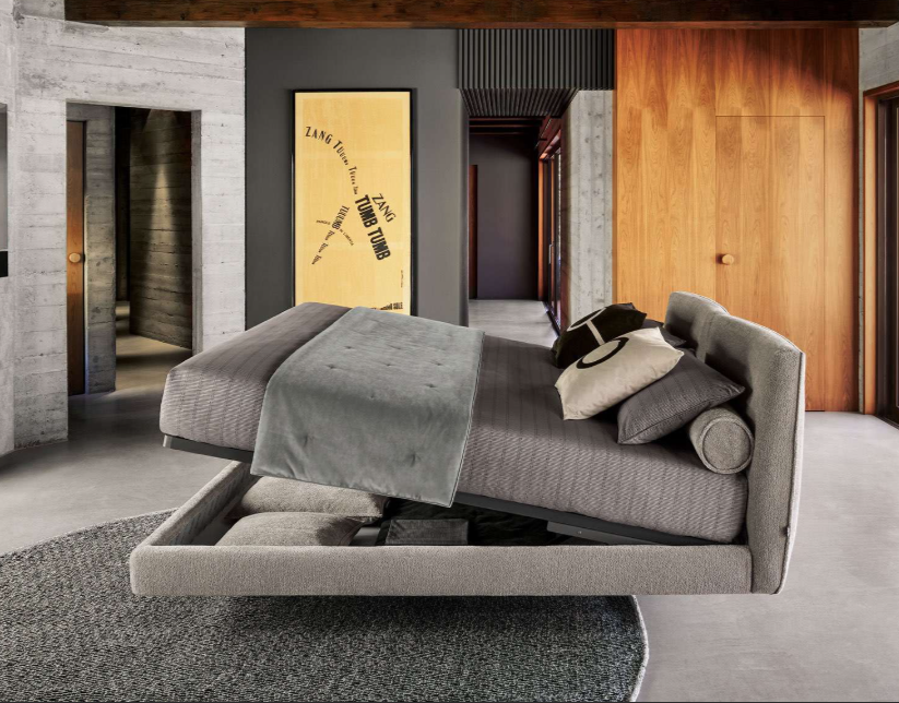 It’s all in the name: Book’s large headboard is reminiscent of an open book, just waiting to be read. The headboard’s padding makes this bed perfect for those who love an evening read, providing comfort and the necessary support. It also features rectangular feet mounted on the sides of the bed frame, positioned to convey extreme formal cleanliness and visual lightness.