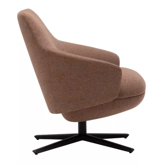 Model: BU2330 Low backed lounge chair with upholstered seat and backrest on a central swivel base of 4 aluminum blades with return system, tilting system and finished in polished aluminum, white or black. Available options: backrest in walnut wood.