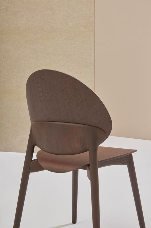 The Constance Guisset-designed Fleuron collection is enriched by the lounge chair, with its comfortably wide backrest and more generous dimensions. Like the side chair, its standout feature is the rear wodworking, where the harmonious connection between the frame and backrest is highlighted by the contrast of colours or finishes. The lounge chair has upholstered seat and back.