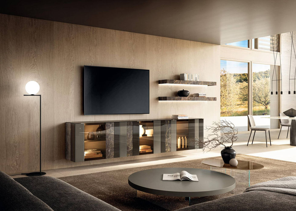 Wood, glass, marble, metal and fabric: a wide range of materials and finishes can be combined to create different compositions, for a look that’s one of a kind.