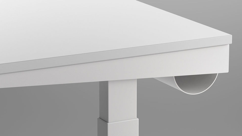 The motorised Sit-to-Stand desk steno impresses with a distinct silhouette made of a flat foot, round cable tray and a seemingly wedge-shaped worktop. Sloping side brackets conceal the technology and substructure. The cable tray, screening walls and accessories are easy to attach. steno makes desk work more ergonomic because you can work in both a seated or standing position.