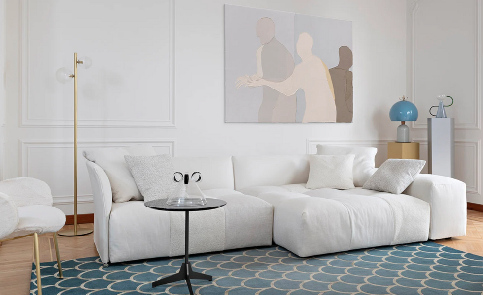Sofa. The Pixel sofa is characterized by a series of elements which can be combined freely using an exclusive connector made by Saba Italia. The arm and back rests can be detached from the base to create endless new arrangements. The feather-padded seat cushions can be upholstered with a patchwork cover highlighting the limitless possibilities of personalization when choosing a Saba sofa.